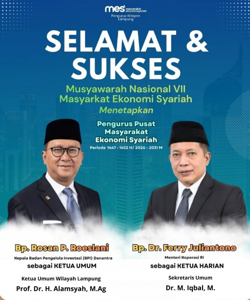 “Dengan kepemimpinan Bapak Rosan dan Bapak Ferry, MES diharapkan mampu menghadirkan inovasi dan strategi yang mendorong pertumbuhan ekonomi berbasis syariah secara berkelanjutan. Lampung siap menjadi salah satu provinsi percontohan implementasi ekonomi syariah yang inklusif,” pungkas Prof. Alamsyah.( Bust )