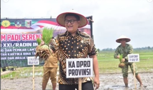 SelidikPost.Com, Bandar Lampung — Ketua DPRD Provinsi Lampung, A. Giri Akbar, S.E., M.B.A., menghadiri kegiatan Tanam Padi Bersama Forum Koordinasi Pimpinan Daerah (Forkopimda) yang digelar pada Selasa (20/1/2026) di Desa Braja Fajar, Kecamatan Way Jepara, Kabupaten Lampung Timur, wilayah teritorial Kodim 0429/Lampung Timur.