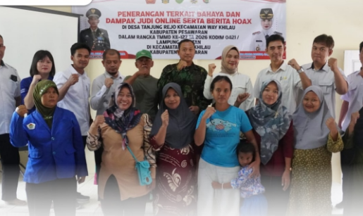 SelidikPost.Com, Pesawaran — Dinas Komunikasi, Informatika, Statistik dan Persandian Kabupaten Pesawaran memberikan sosialisasi terkait bahaya judi online serta penyebaran hoaks kepada masyarakat dalam rangka kegiatan nonfisik TNI Manunggal Membangun Desa (TMMD) ke-127 yang dilaksanakan oleh Kodim 0421/Lampung Selatan.