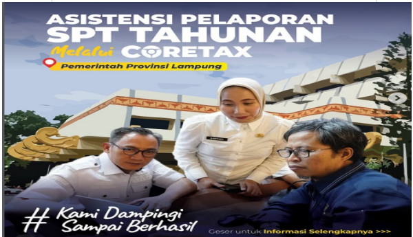 SelidikPost.Com, Bandar Lampung – Kantor Wilayah Direktorat Jenderal Pajak (DJP) Bengkulu dan Lampung berkolaborasi dengan Pemerintah Provinsi Lampung memfasilitasi asistensi pelaporan SPT Tahunan Pajak Penghasilan (PPh) Tahun Pajak 2025 melalui sistem Coretax. Kegiatan tersebut dilaksanakan di Gedung Kantor Gubernur Lampung, Rabu (25/2).