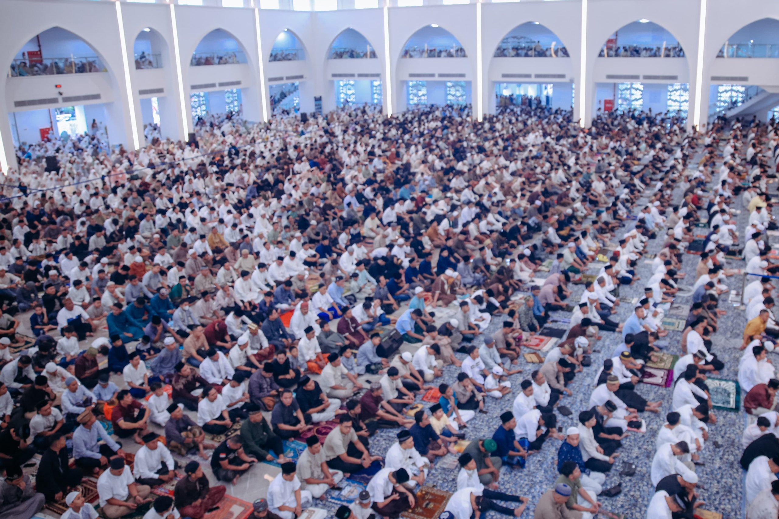 Dalam sambutannya, Gubernur Mirza mengajak masyarakat menjadikan Idulfitri sebagai momentum memperkuat kepedulian sosial dan mempererat persatuan.