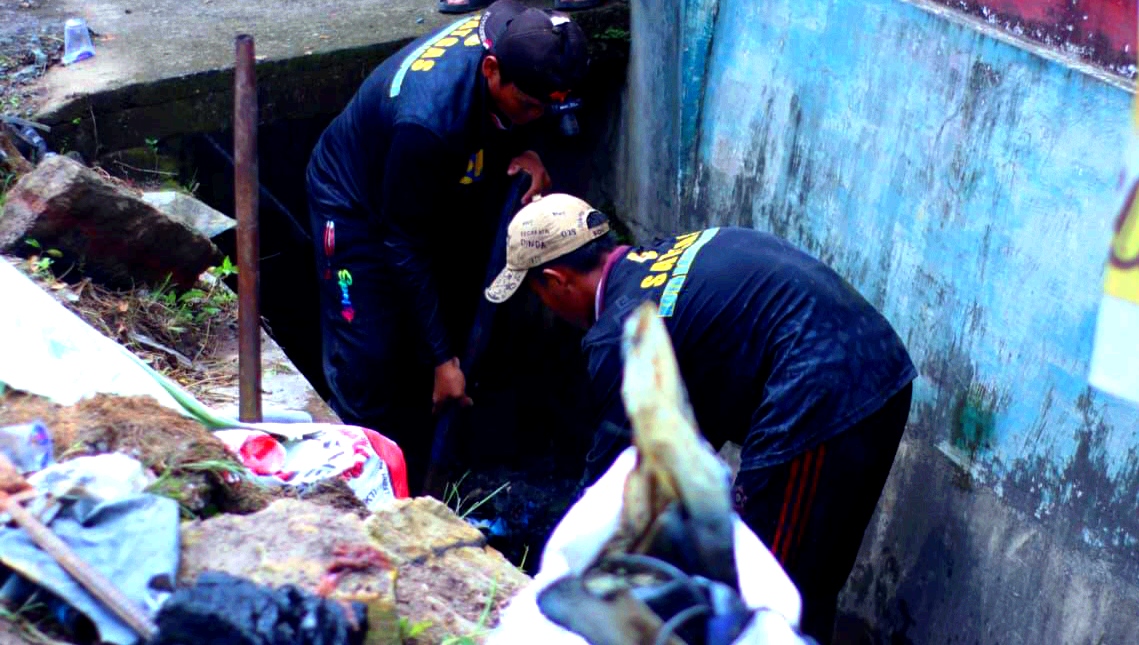 Pembersihan dilakukan dengan mengangkat endapan lumpur, pasir, serta tanaman liar yang menyumbat aliran, guna mengembalikan kapasitas drainase agar berfungsi optimal.